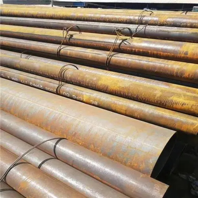 三门峡gb3087无缝钢管要用钢锭或实芯管料经破孔制成毛管,随后经热扎、冷轧或冷拨制成。三门峡gb3087无缝钢管在中国钢管业中具备重要的位置。据不完全统计,我国目前无缝管生产公司约240多家,无缝管机组约250多套,年产能力约450多万吨。从规格看,三门峡gb3087无缝钢管的原料是圆管坯,圆管胚要经过切割机的切割制作成长短约为1米胚料,并经输送带送至溶炉内加温。钢坯被送进溶炉内加温,温度约为1200℃。燃料为氢气或乙炔。炉内温控是关键性的难题.圆管坯出炉后要经过压力穿孔机开展穿空。一般较常见的穿孔机是锥形辊穿孔机,这类穿孔机生产效率高,产品品质好,破孔扩径量多,可穿多种钢种。破孔后,圆管坯就先后被三辊斜轧、连轧或挤压。挤压后应脱管定径。定径机根据锥形钻头高速运转入钢胚打孔,产生钢管。钢管内径由定径机钻头的直径长短来决定。钢管经定径后,进入冷却塔中,根据喷水冷却,钢管经冷后,就要被校直。钢管经校直后由输送带送往金属探伤机(或压力试验)进行内部探伤。若钢管内部有裂痕,气泡等问题,将被检测出。钢管质检后还要通过严格手工选择。钢管质检后,用漆料喷上编号、规格、生产日期等。并由吊车吊入仓库里。